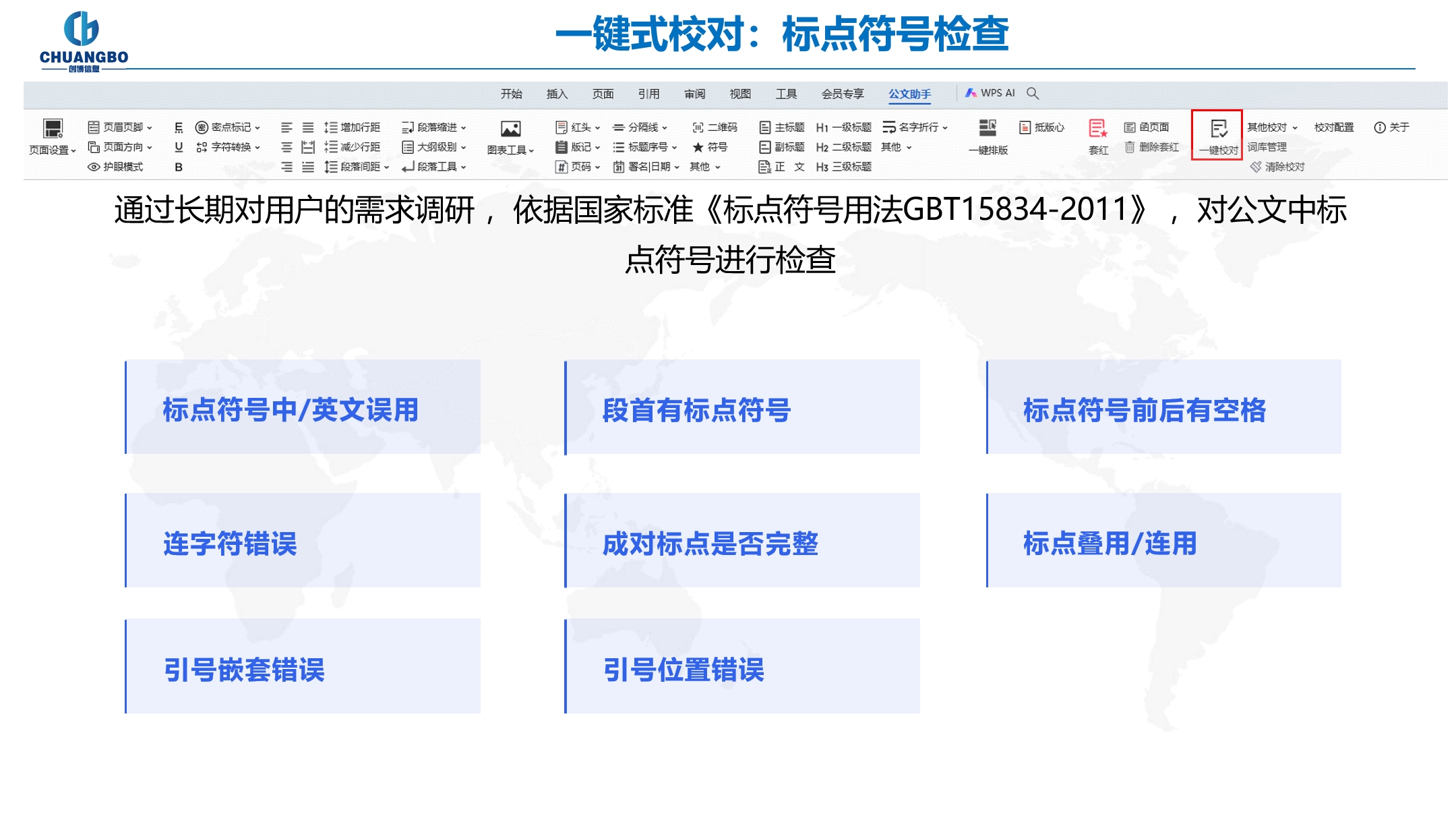 通过长期对用户的需求调研 ,依据标点符号的国家标准,对公文中标 点符号进行检查。